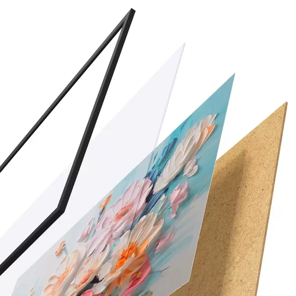 Plakāts sastāv no rāmja, pleksstikla, iespiestā attēla un skaidu plātnes pamatnes. Plakātu var uzreiz piekarināt pie sienas, pateicoties aizmugurē esošajiem stiprinājumiem.
