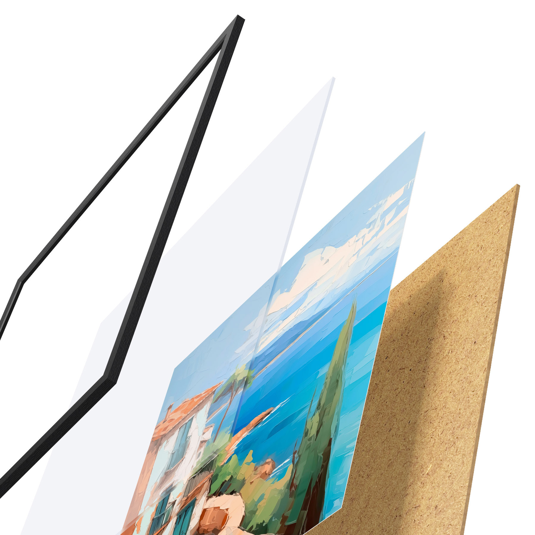 Plakāts sastāv no rāmja, pleksstikla, iespiestā attēla un skaidu plātnes pamatnes. Plakātu var uzreiz piekarināt pie sienas, pateicoties aizmugurē esošajiem stiprinājumiem.
