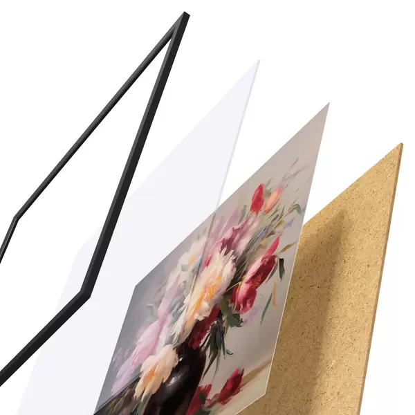 Plakāts sastāv no rāmja, pleksstikla, iespiestā attēla un skaidu plātnes pamatnes. Plakātu var uzreiz piekarināt pie sienas, pateicoties aizmugurē esošajiem stiprinājumiem.