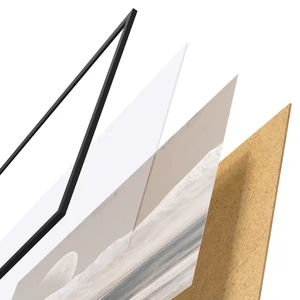 Plakāts sastāv no rāmja, pleksstikla, iespiestā attēla un skaidu plātnes pamatnes. Plakātu var uzreiz piekarināt pie sienas, pateicoties aizmugurē esošajiem stiprinājumiem.