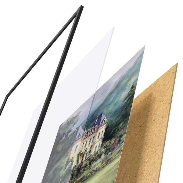 Plakāts sastāv no rāmja, pleksstikla, iespiestā attēla un skaidu plātnes pamatnes. Plakātu var uzreiz piekarināt pie sienas, pateicoties aizmugurē esošajiem stiprinājumiem.