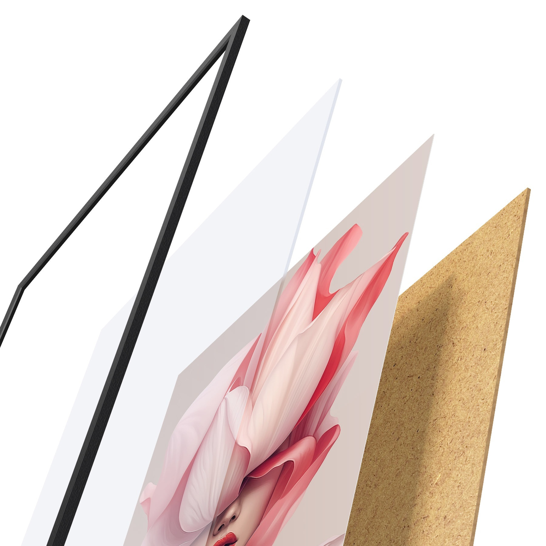 Plakāts sastāv no rāmja, pleksstikla, iespiestā attēla un skaidu plātnes pamatnes. Plakātu var uzreiz piekarināt pie sienas, pateicoties aizmugurē esošajiem stiprinājumiem.