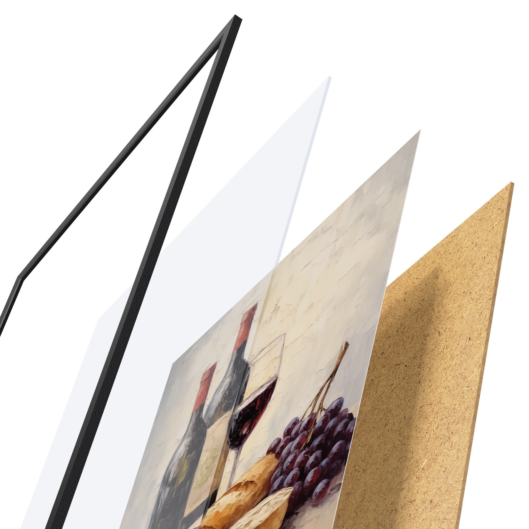 Plakāts sastāv no rāmja, pleksstikla, iespiestā attēla un skaidu plātnes pamatnes. Plakātu var uzreiz piekarināt pie sienas, pateicoties aizmugurē esošajiem stiprinājumiem.