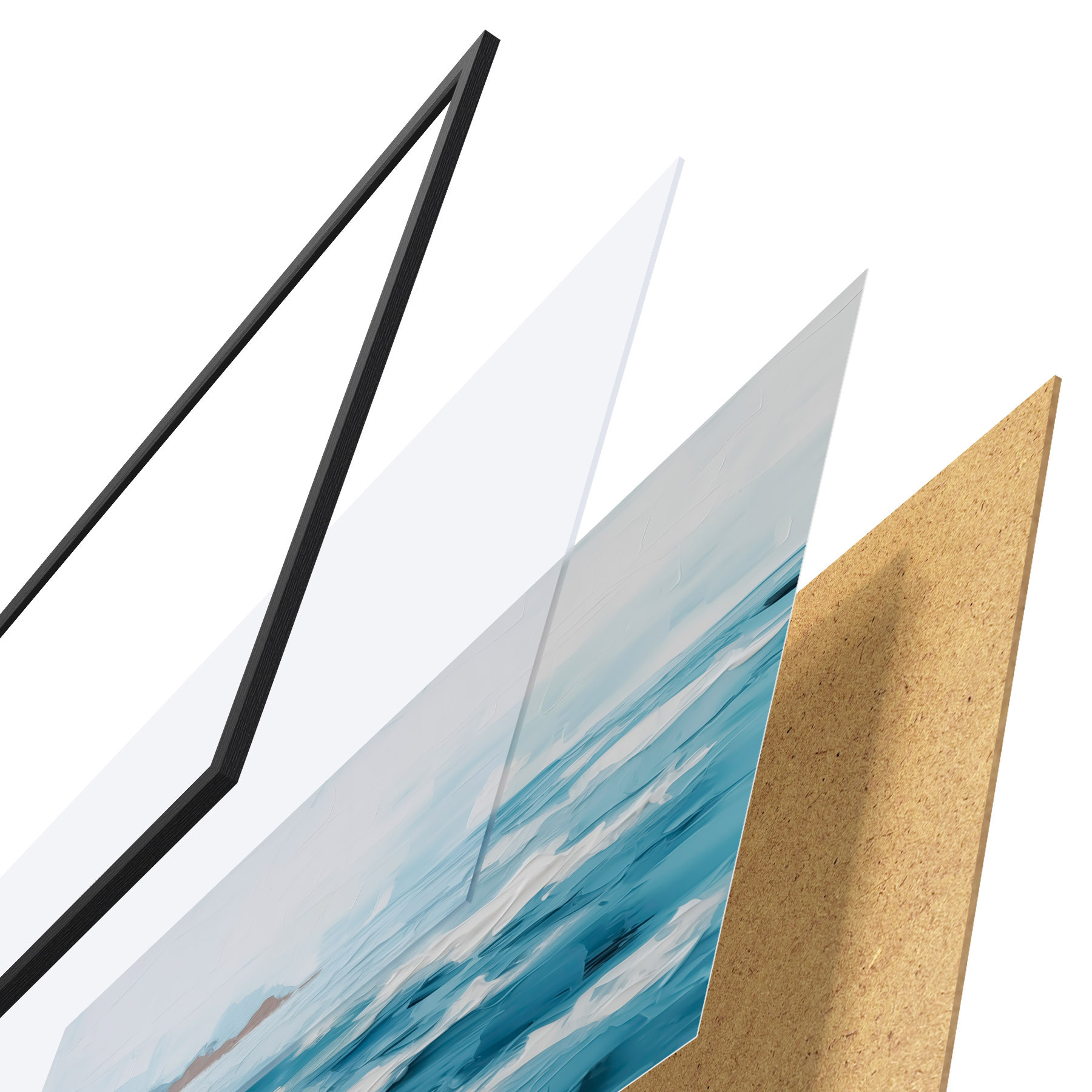 Plakāts sastāv no rāmja, pleksstikla, iespiestā attēla un skaidu plātnes pamatnes. Plakātu var uzreiz piekarināt pie sienas, pateicoties aizmugurē esošajiem stiprinājumiem.