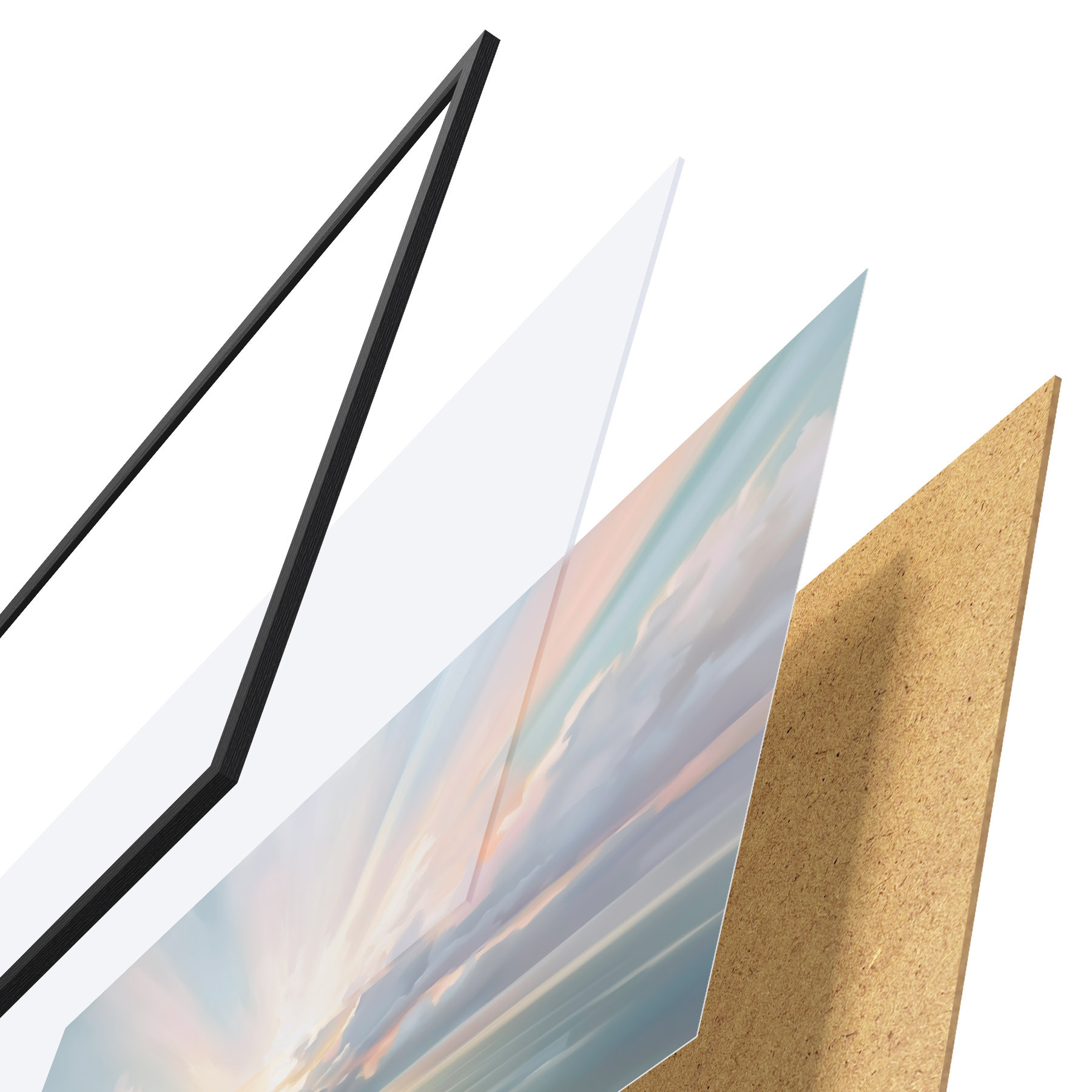 Plakāts sastāv no rāmja, pleksstikla, iespiestā attēla un skaidu plātnes pamatnes. Plakātu var uzreiz piekarināt pie sienas, pateicoties aizmugurē esošajiem stiprinājumiem.