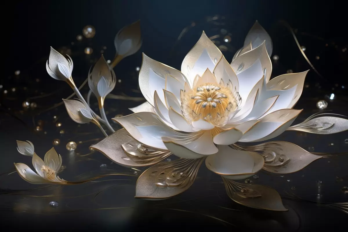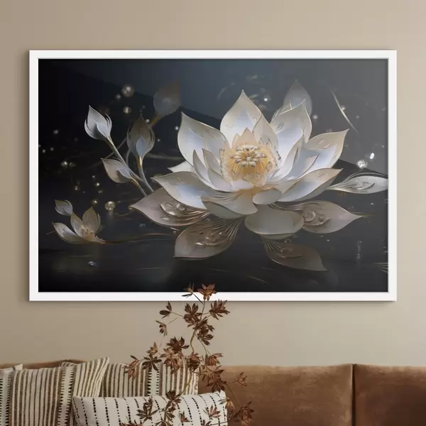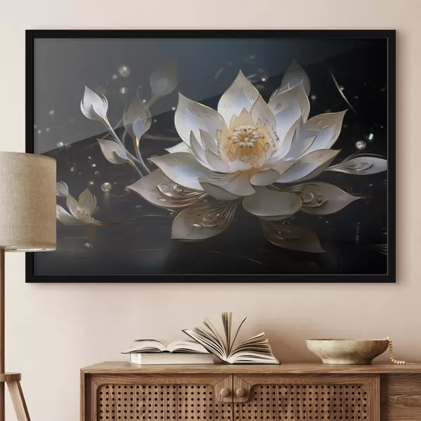 Plakāts Lotoss ar elegantiem rakstiem uz tumša fona Nr f44841