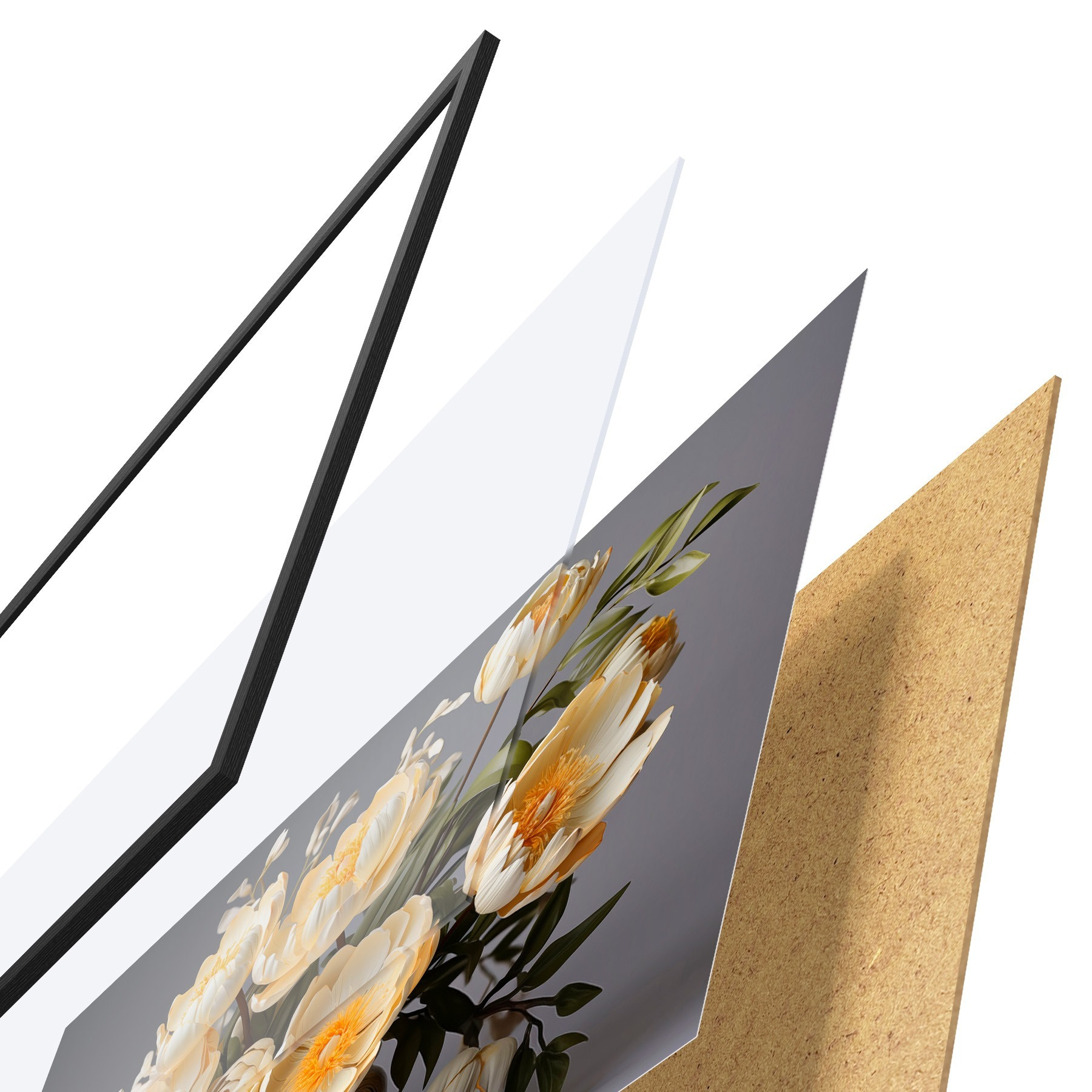 Plakāts sastāv no rāmja, pleksstikla, iespiestā attēla un skaidu plātnes pamatnes. Plakātu var uzreiz piekarināt pie sienas, pateicoties aizmugurē esošajiem stiprinājumiem.