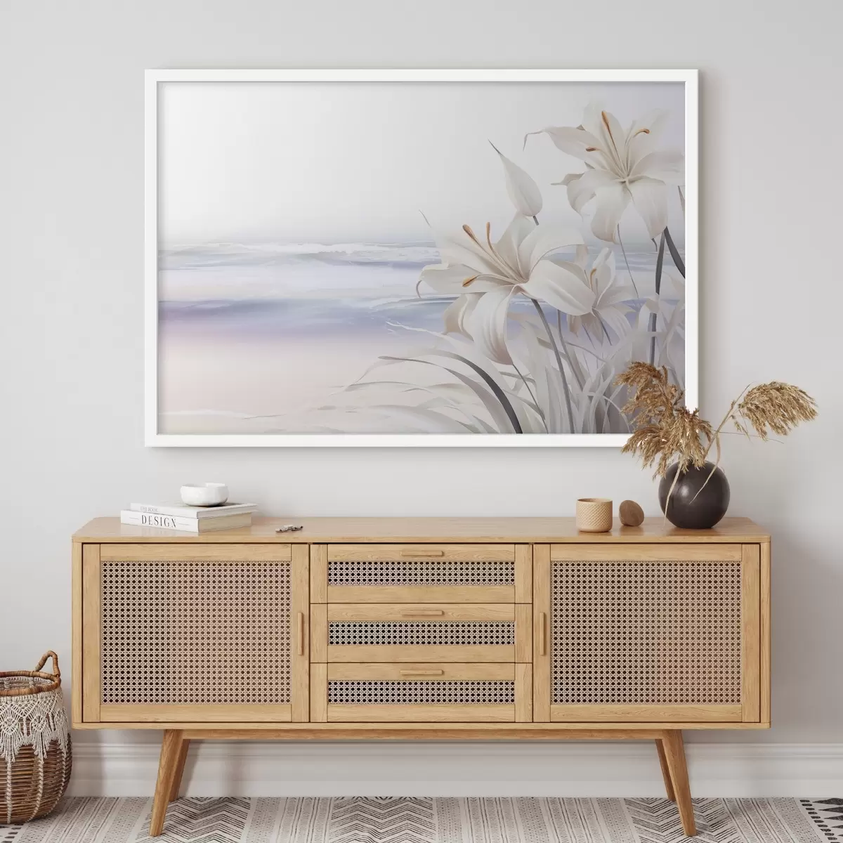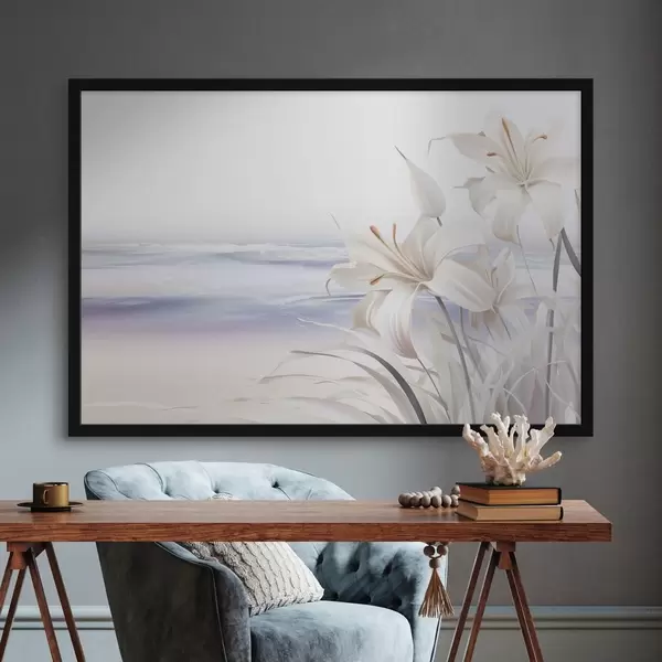 SākumlapaPlakātu katalogsPlakāti ziediPlakāts Baltas lilijas ar oranžiem augļlapiņām un garām lapām pludmalē ar mīkstiem viļņiem fonā, pasteļtoņos Nr f44850