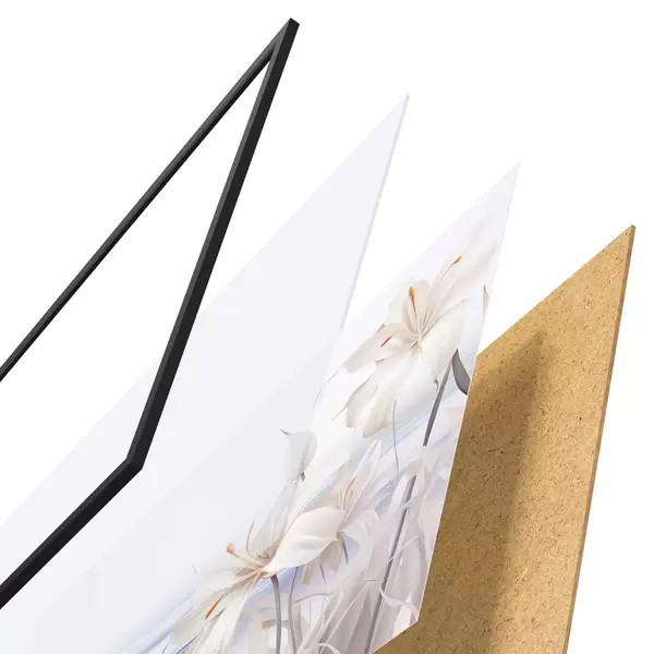 Plakāts sastāv no rāmja, pleksstikla, iespiestā attēla un skaidu plātnes pamatnes. Plakātu var uzreiz piekarināt pie sienas, pateicoties aizmugurē esošajiem stiprinājumiem.