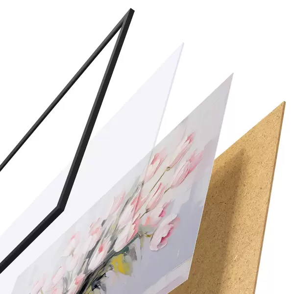 Plakāts sastāv no rāmja, pleksstikla, iespiestā attēla un skaidu plātnes pamatnes. Plakātu var uzreiz piekarināt pie sienas, pateicoties aizmugurē esošajiem stiprinājumiem.