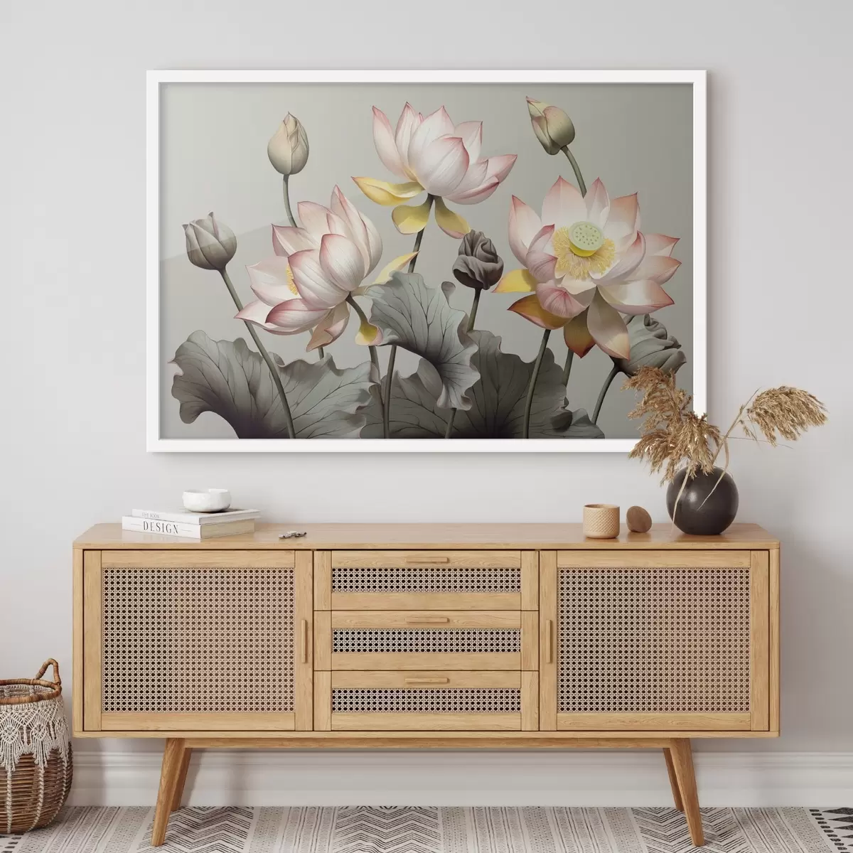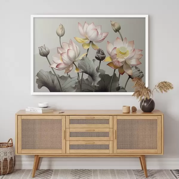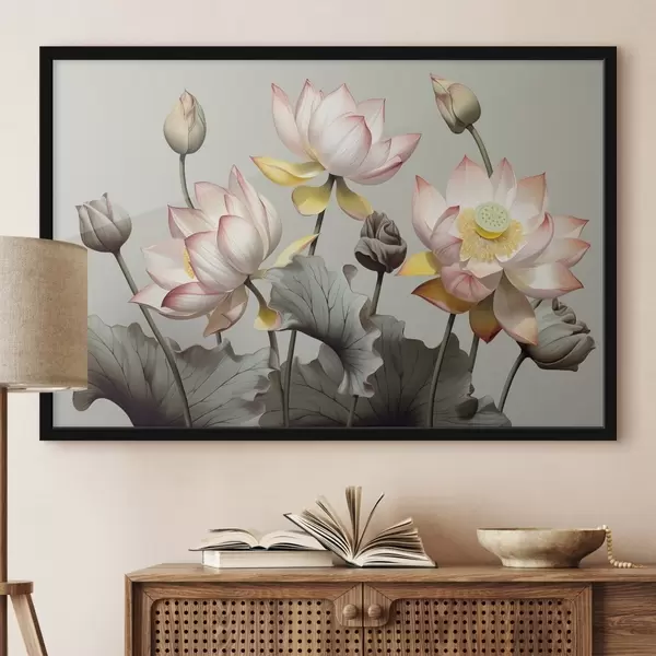 SākumlapaPlakātu katalogsPlakāti ziediPlakāts Lotosa ziedi ar pasteļkrāsu ziedlapiņām un zaļām zaļām lapām, izslēgtā krāsu paletē, uz vienkārša fona Nr f44862