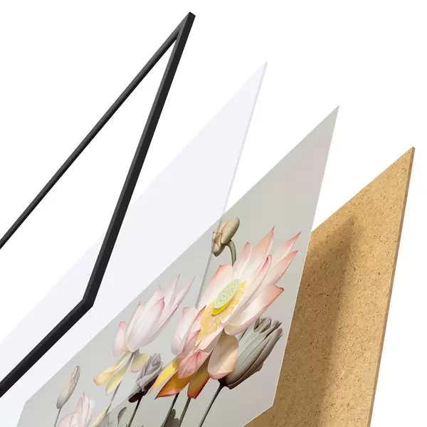 Plakāts sastāv no rāmja, pleksstikla, iespiestā attēla un skaidu plātnes pamatnes. Plakātu var uzreiz piekarināt pie sienas, pateicoties aizmugurē esošajiem stiprinājumiem.