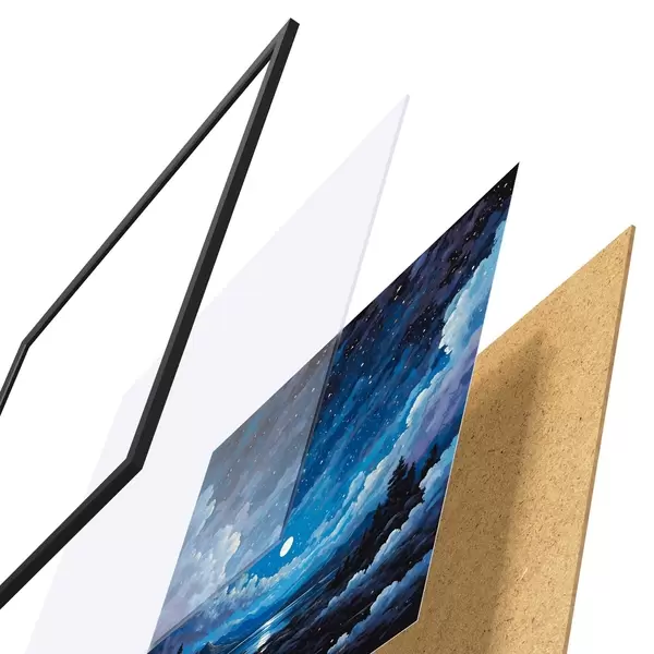 Plakāts sastāv no rāmja, pleksstikla, iespiestā attēla un skaidu plātnes pamatnes. Plakātu var uzreiz piekarināt pie sienas, pateicoties aizmugurē esošajiem stiprinājumiem.