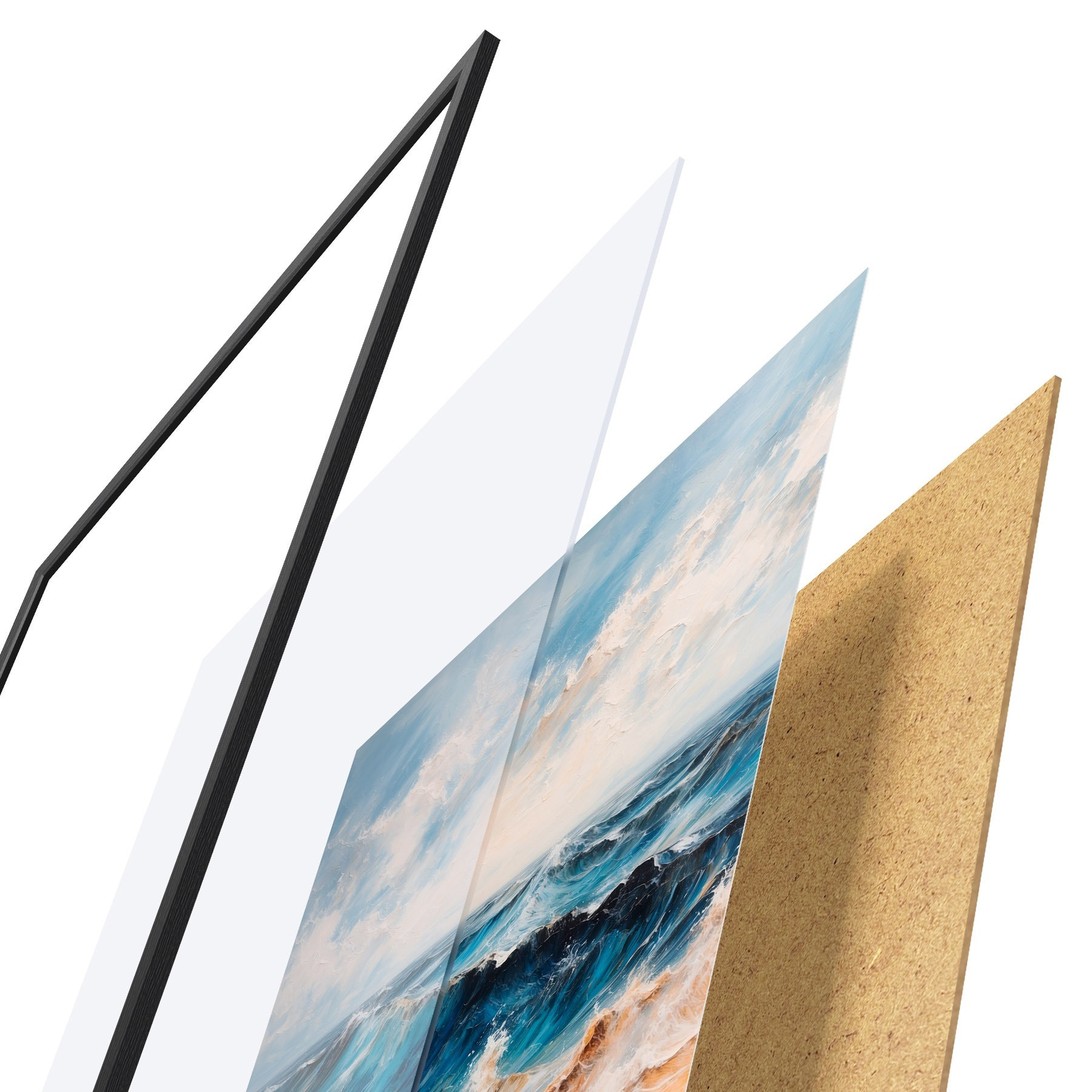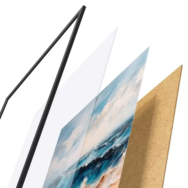 Plakāts sastāv no rāmja, pleksstikla, iespiestā attēla un skaidu plātnes pamatnes. Plakātu var uzreiz piekarināt pie sienas, pateicoties aizmugurē esošajiem stiprinājumiem.