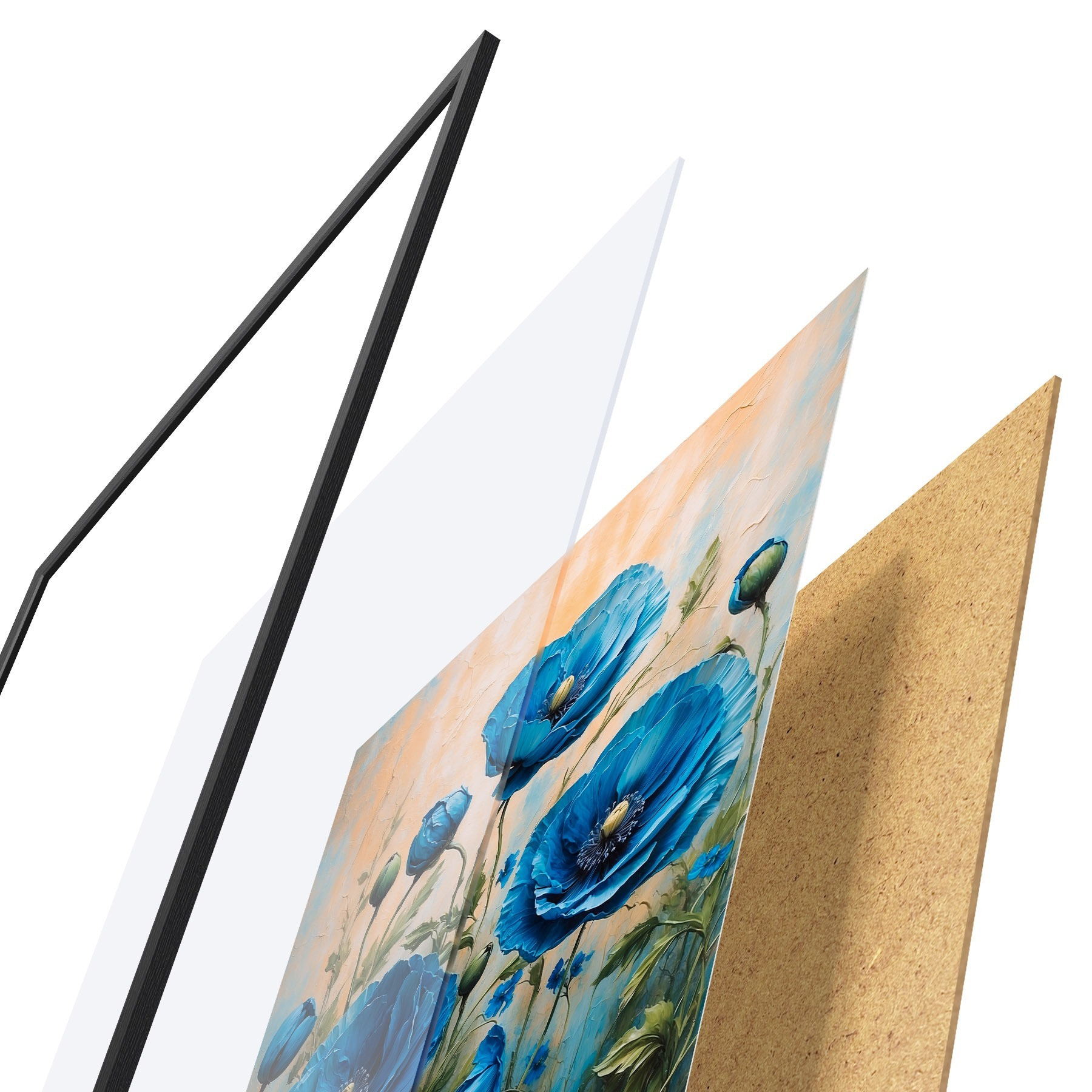 Plakāts sastāv no rāmja, pleksstikla, iespiestā attēla un skaidu plātnes pamatnes. Plakātu var uzreiz piekarināt pie sienas, pateicoties aizmugurē esošajiem stiprinājumiem.