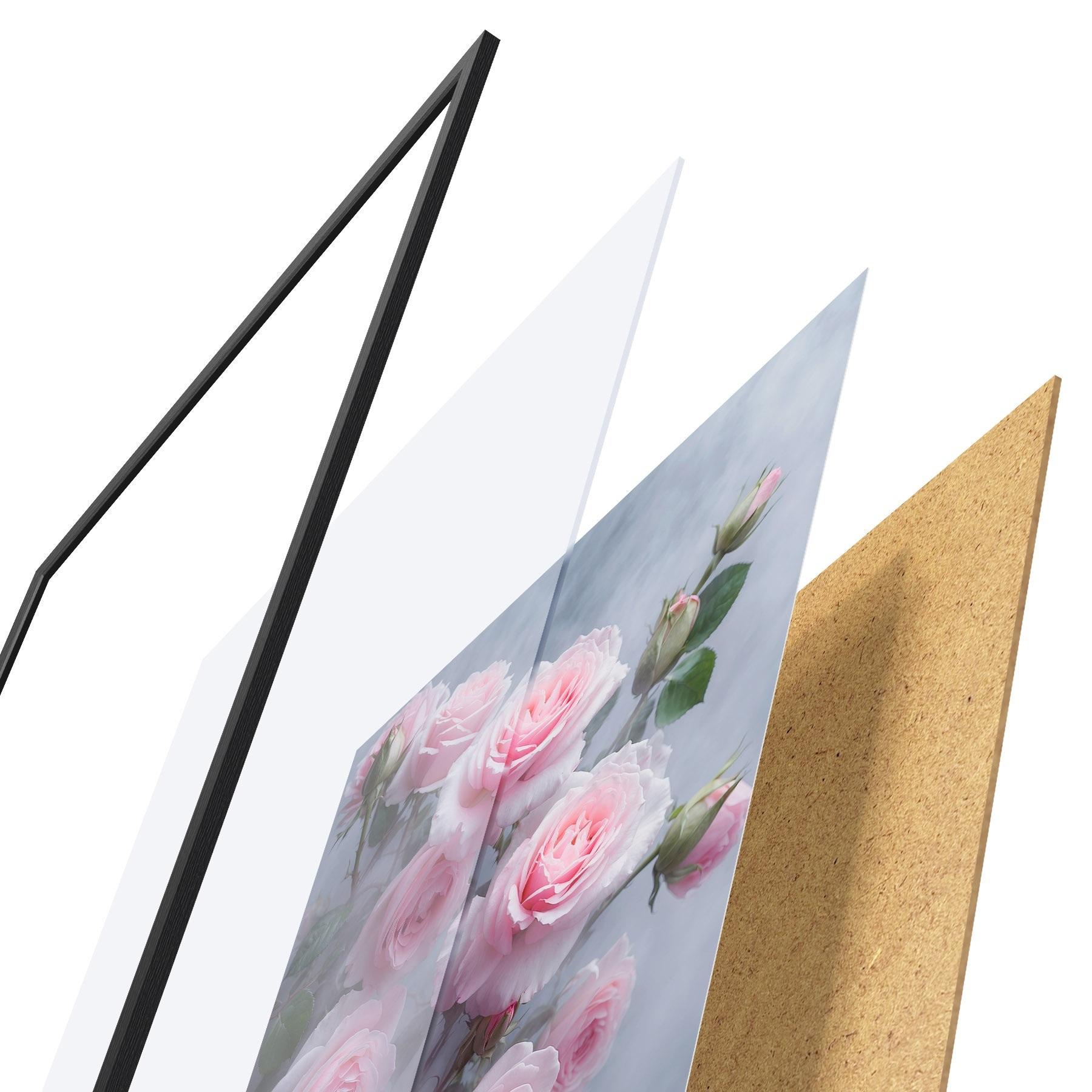 Plakāts sastāv no rāmja, pleksstikla, iespiestā attēla un skaidu plātnes pamatnes. Plakātu var uzreiz piekarināt pie sienas, pateicoties aizmugurē esošajiem stiprinājumiem.