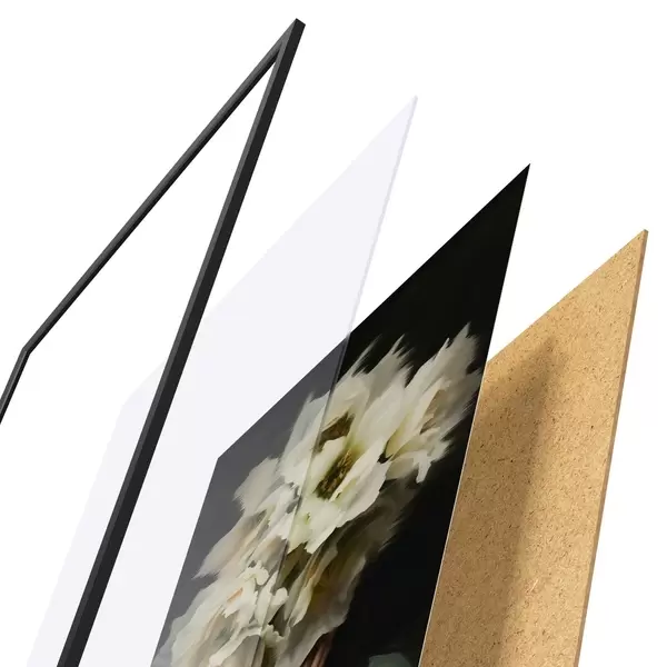 Plakāts sastāv no rāmja, pleksstikla, iespiestā attēla un skaidu plātnes pamatnes. Plakātu var uzreiz piekarināt pie sienas, pateicoties aizmugurē esošajiem stiprinājumiem.