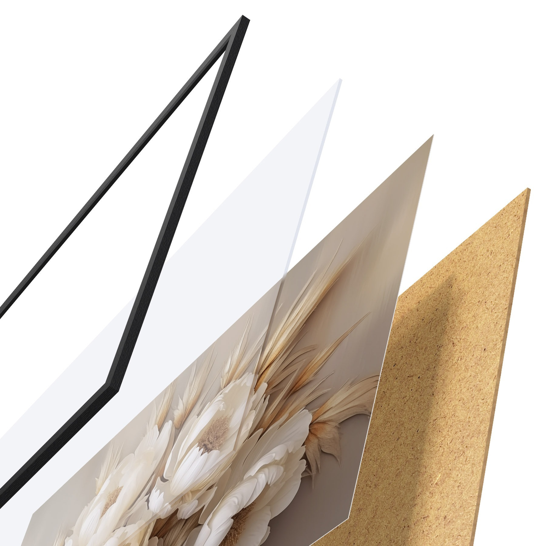 Plakāts sastāv no rāmja, pleksstikla, iespiestā attēla un skaidu plātnes pamatnes. Plakātu var uzreiz piekarināt pie sienas, pateicoties aizmugurē esošajiem stiprinājumiem.