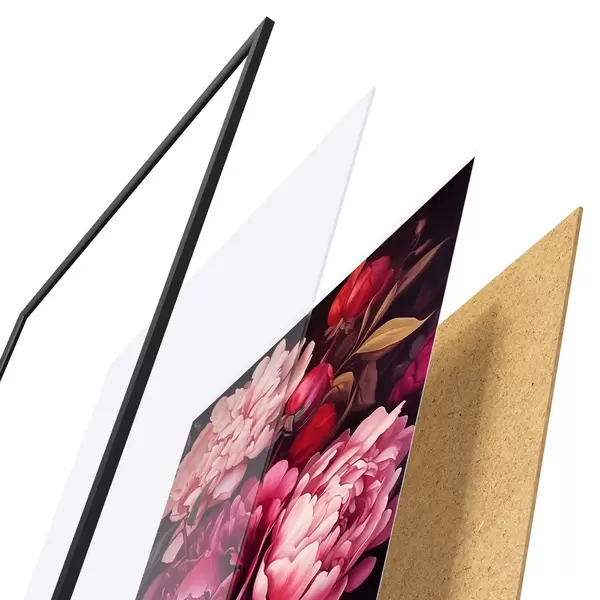 Plakāts sastāv no rāmja, pleksstikla, iespiestā attēla un skaidu plātnes pamatnes. Plakātu var uzreiz piekarināt pie sienas, pateicoties aizmugurē esošajiem stiprinājumiem.