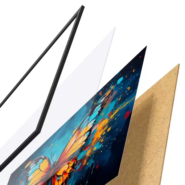 Plakāts sastāv no rāmja, pleksstikla, iespiestā attēla un skaidu plātnes pamatnes. Plakātu var uzreiz piekarināt pie sienas, pateicoties aizmugurē esošajiem stiprinājumiem.