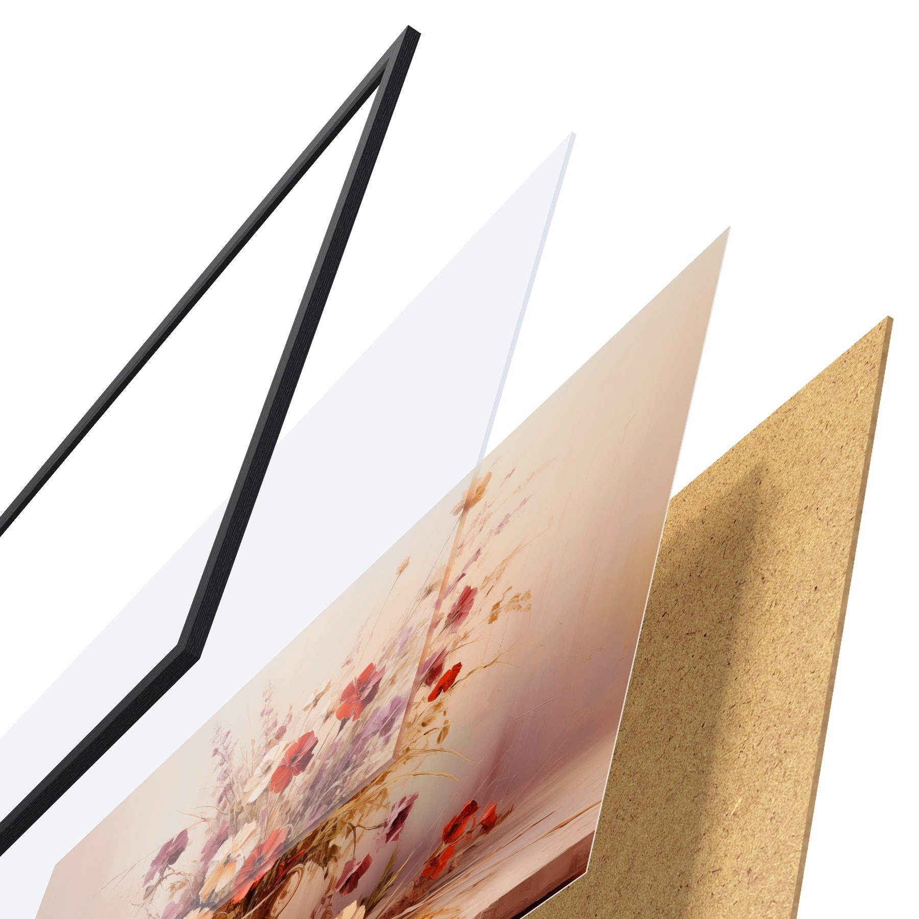 Plakāts sastāv no rāmja, pleksstikla, iespiestā attēla un skaidu plātnes pamatnes. Plakātu var uzreiz piekarināt pie sienas, pateicoties aizmugurē esošajiem stiprinājumiem.