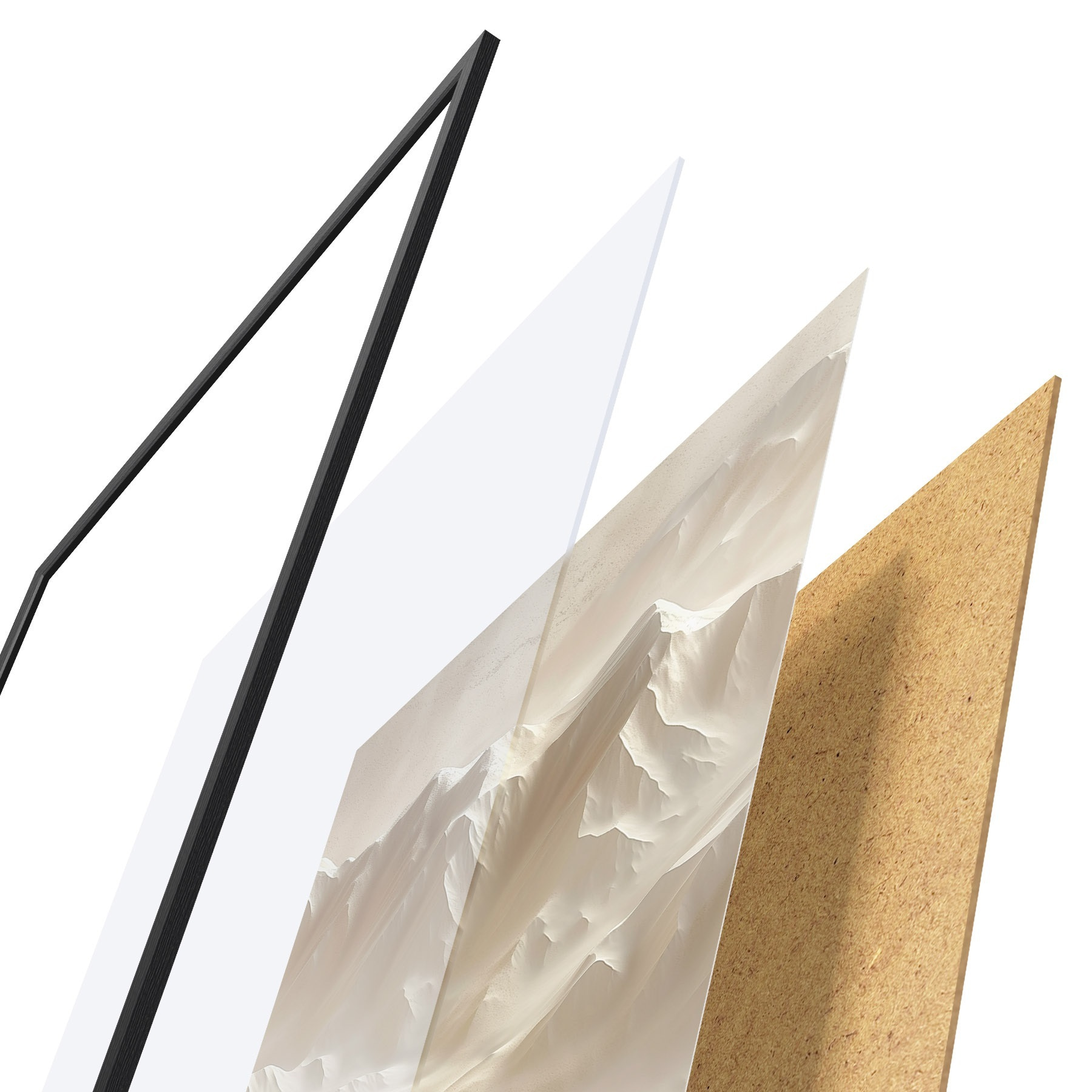 Plakāts sastāv no rāmja, pleksstikla, iespiestā attēla un skaidu plātnes pamatnes. Plakātu var uzreiz piekarināt pie sienas, pateicoties aizmugurē esošajiem stiprinājumiem.