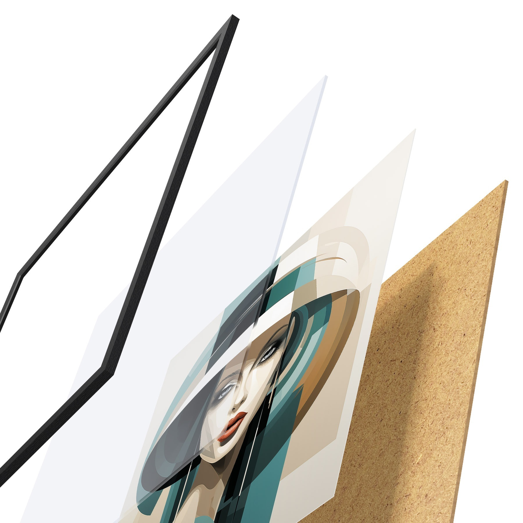 Plakāts sastāv no rāmja, pleksstikla, iespiestā attēla un skaidu plātnes pamatnes. Plakātu var uzreiz piekarināt pie sienas, pateicoties aizmugurē esošajiem stiprinājumiem.