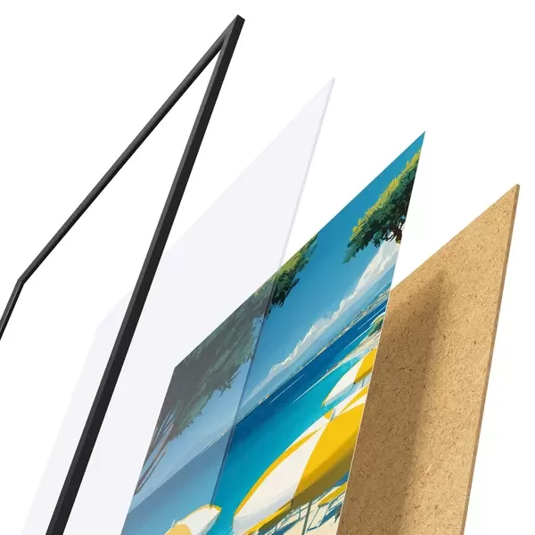 Plakāts sastāv no rāmja, pleksstikla, iespiestā attēla un skaidu plātnes pamatnes. Plakātu var uzreiz piekarināt pie sienas, pateicoties aizmugurē esošajiem stiprinājumiem.