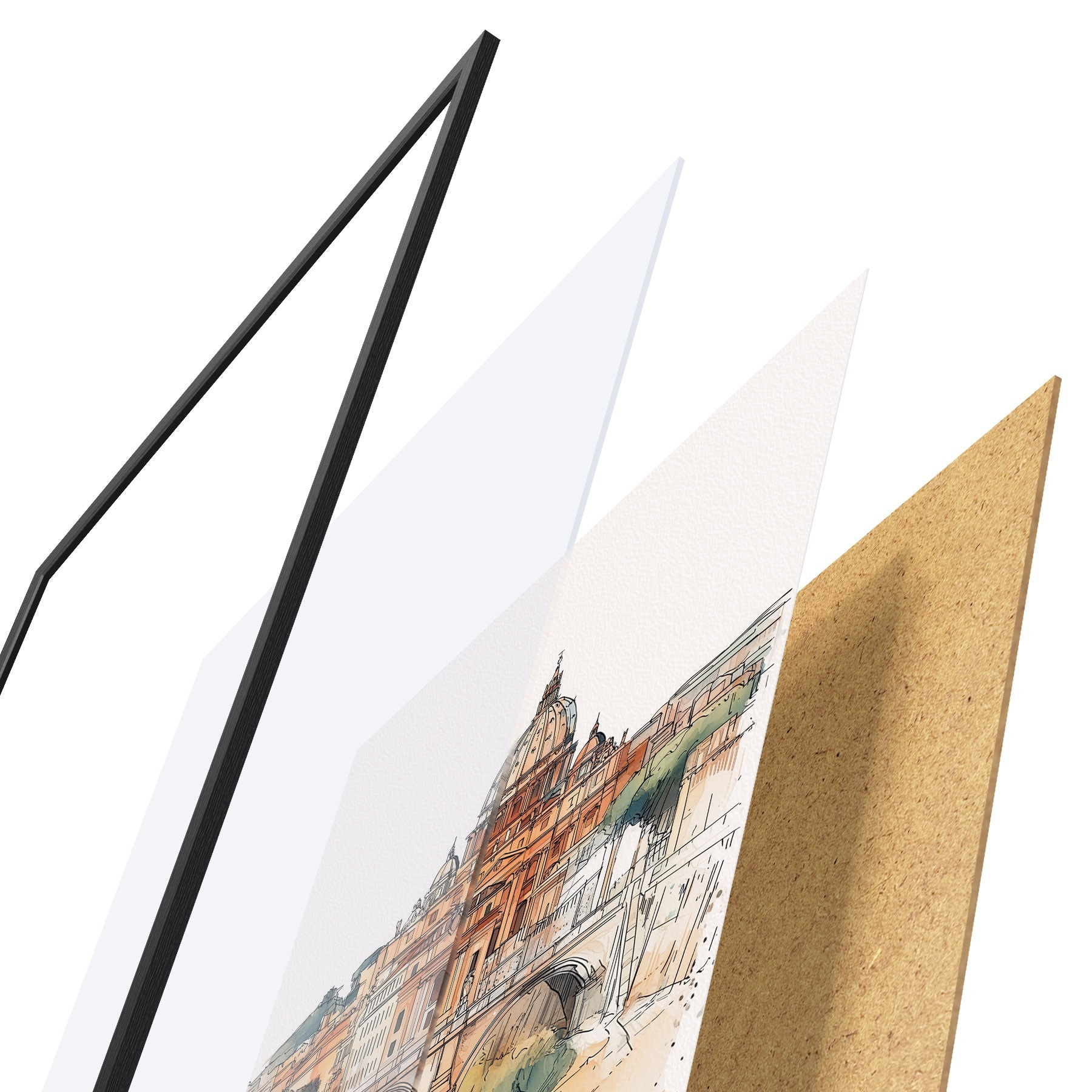 Plakāts sastāv no rāmja, pleksstikla, iespiestā attēla un skaidu plātnes pamatnes. Plakātu var uzreiz piekarināt pie sienas, pateicoties aizmugurē esošajiem stiprinājumiem.