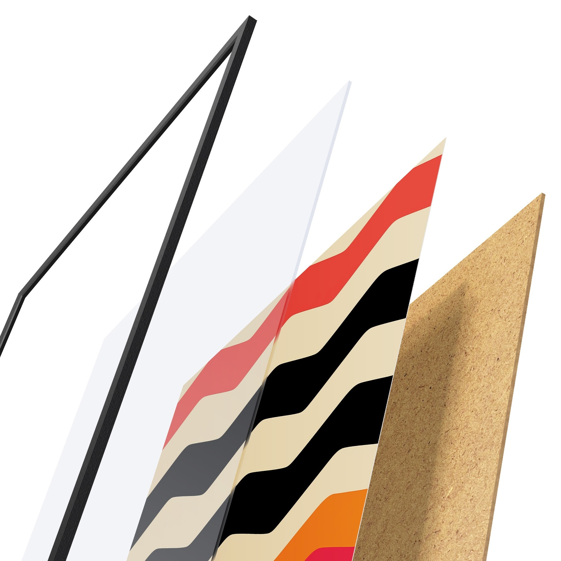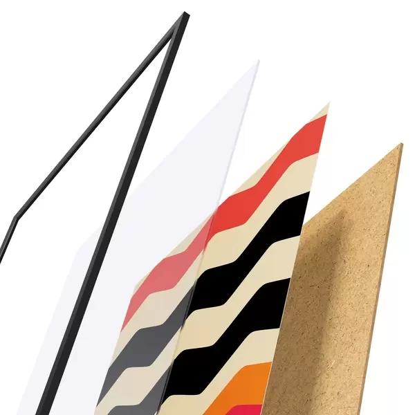 Plakāts sastāv no rāmja, pleksstikla, iespiestā attēla un skaidu plātnes pamatnes. Plakātu var uzreiz piekarināt pie sienas, pateicoties aizmugurē esošajiem stiprinājumiem.