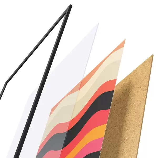 Plakāts sastāv no rāmja, pleksstikla, iespiestā attēla un skaidu plātnes pamatnes. Plakātu var uzreiz piekarināt pie sienas, pateicoties aizmugurē esošajiem stiprinājumiem.