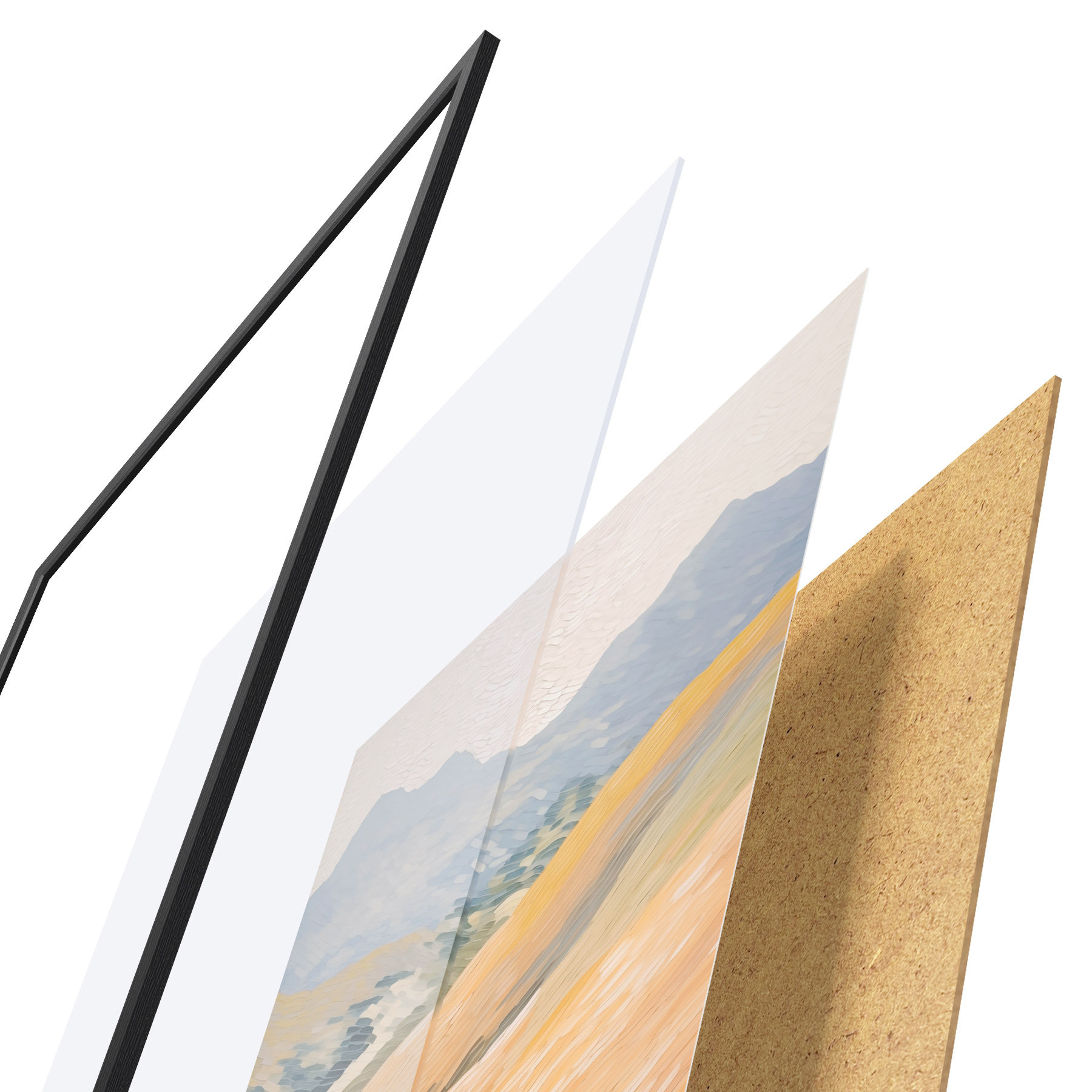 Plakāts sastāv no rāmja, pleksstikla, iespiestā attēla un skaidu plātnes pamatnes. Plakātu var uzreiz piekarināt pie sienas, pateicoties aizmugurē esošajiem stiprinājumiem.