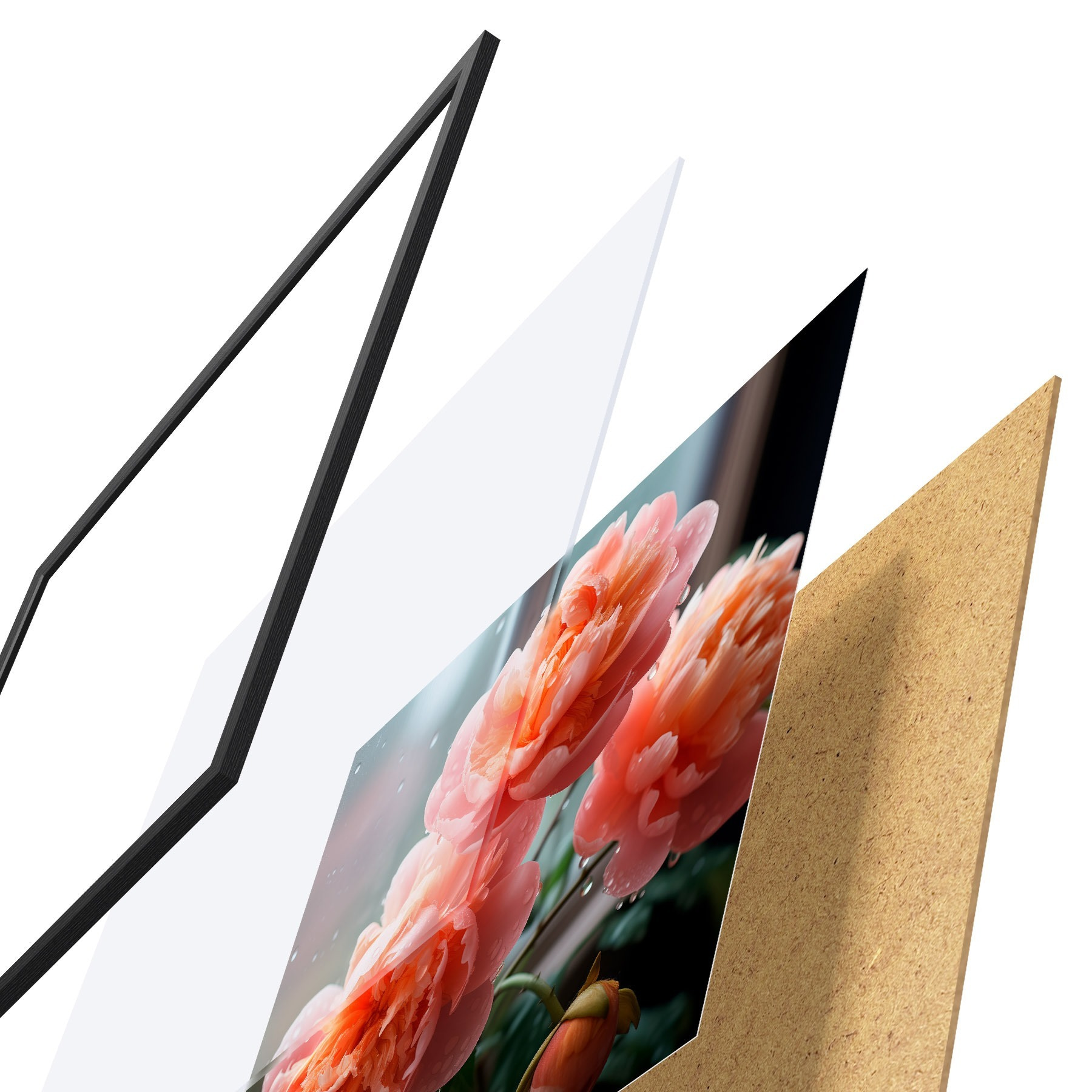 Plakāts sastāv no rāmja, pleksstikla, iespiestā attēla un skaidu plātnes pamatnes. Plakātu var uzreiz piekarināt pie sienas, pateicoties aizmugurē esošajiem stiprinājumiem.