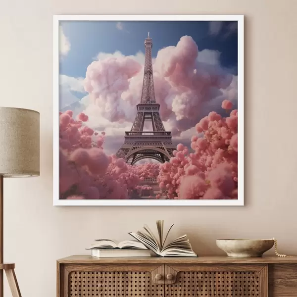 Plakāts Eifeļa tornis rozā mākoņos fantāzijas stilā Nr f45036