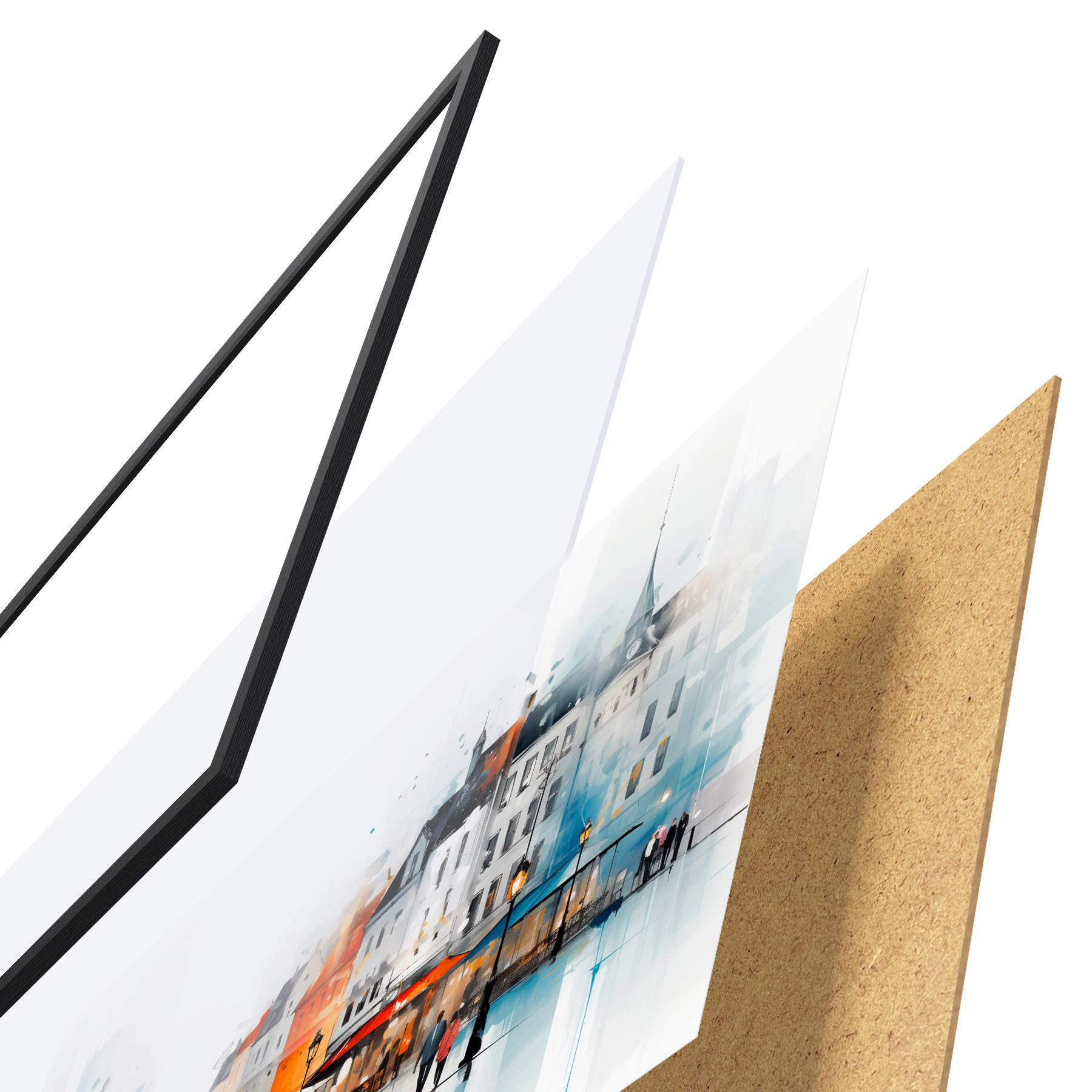 Plakāts sastāv no rāmja, pleksstikla, iespiestā attēla un skaidu plātnes pamatnes. Plakātu var uzreiz piekarināt pie sienas, pateicoties aizmugurē esošajiem stiprinājumiem.