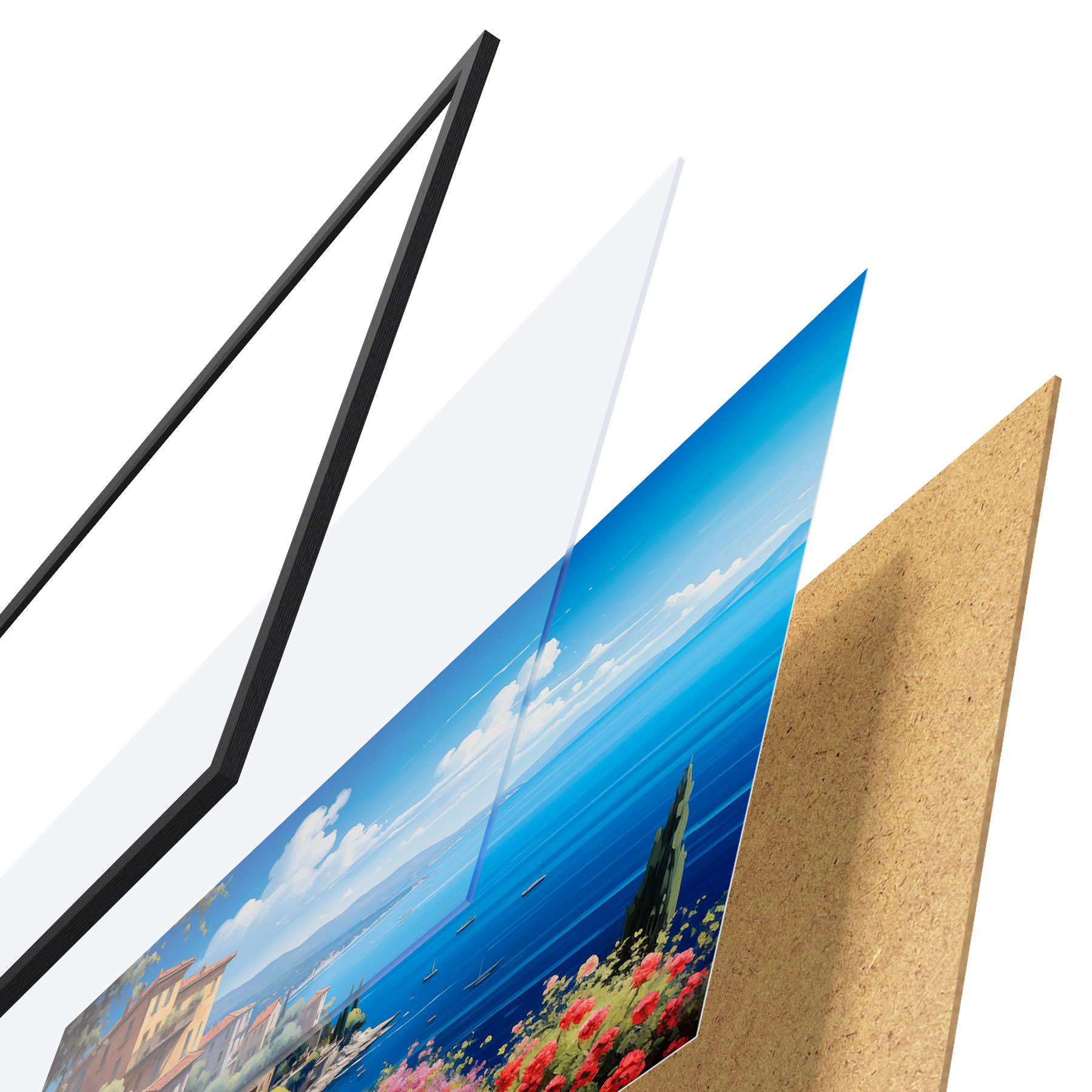 Plakāts sastāv no rāmja, pleksstikla, iespiestā attēla un skaidu plātnes pamatnes. Plakātu var uzreiz piekarināt pie sienas, pateicoties aizmugurē esošajiem stiprinājumiem.