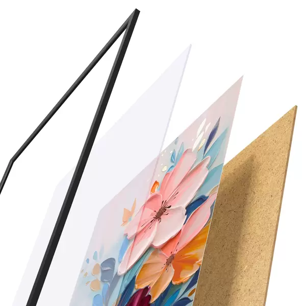 Plakāts sastāv no rāmja, pleksstikla, iespiestā attēla un skaidu plātnes pamatnes. Plakātu var uzreiz piekarināt pie sienas, pateicoties aizmugurē esošajiem stiprinājumiem.
