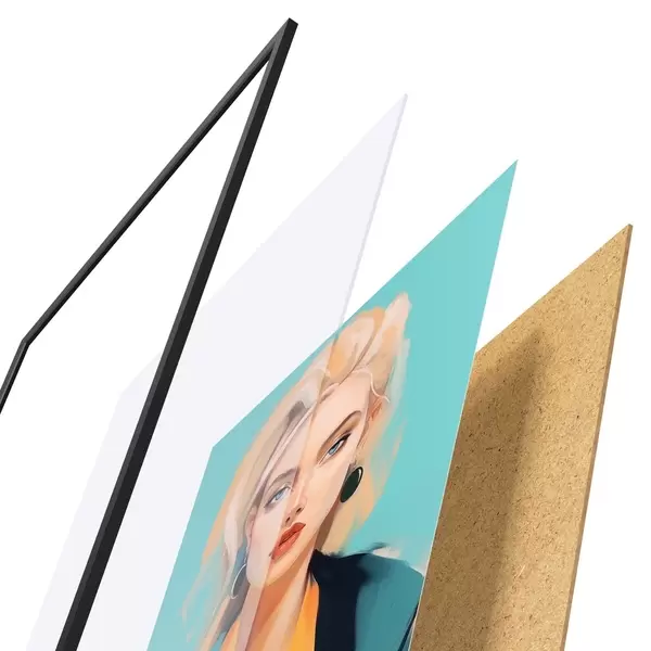 Plakāts sastāv no rāmja, pleksstikla, iespiestā attēla un skaidu plātnes pamatnes. Plakātu var uzreiz piekarināt pie sienas, pateicoties aizmugurē esošajiem stiprinājumiem.