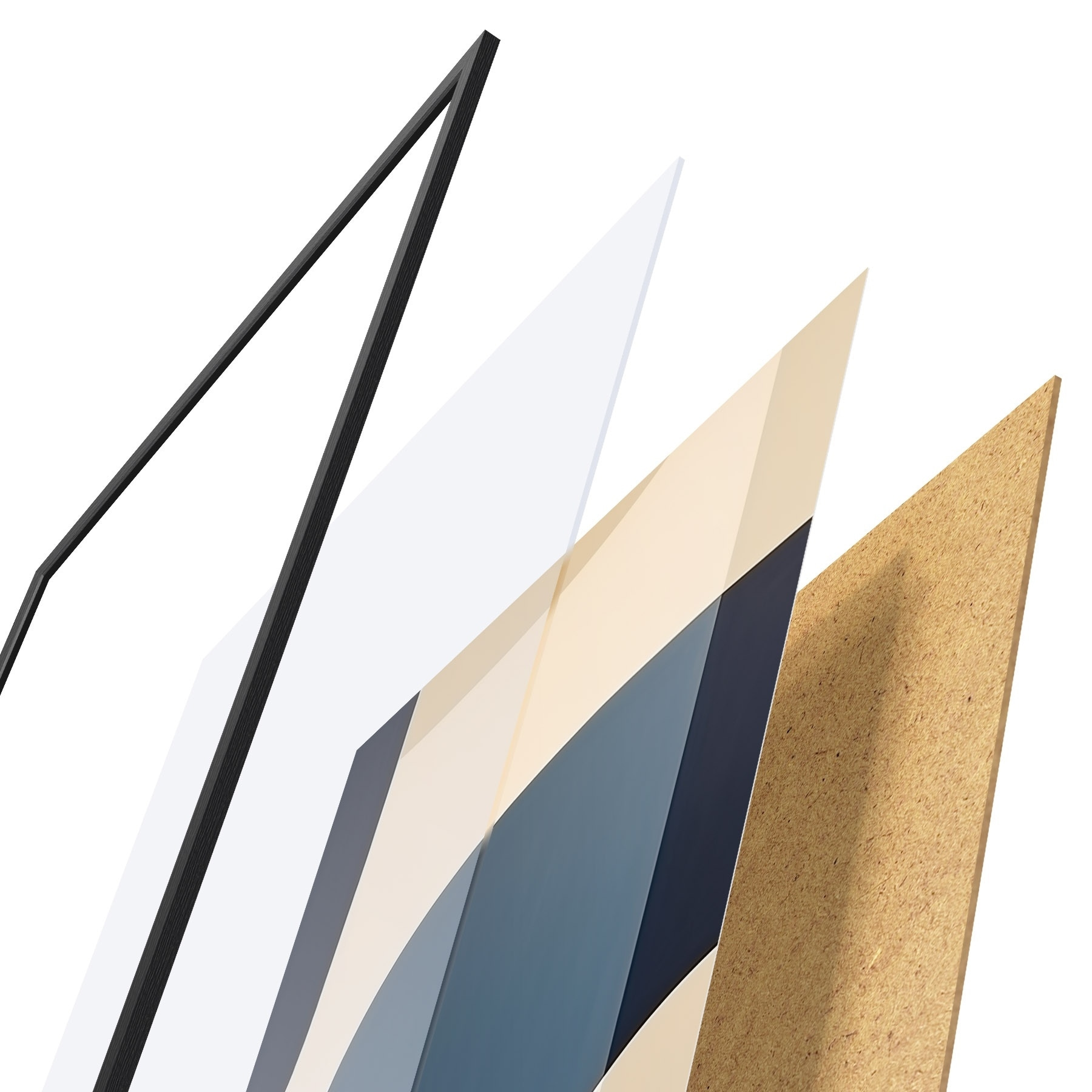 Plakāts sastāv no rāmja, pleksstikla, iespiestā attēla un skaidu plātnes pamatnes. Plakātu var uzreiz piekarināt pie sienas, pateicoties aizmugurē esošajiem stiprinājumiem.