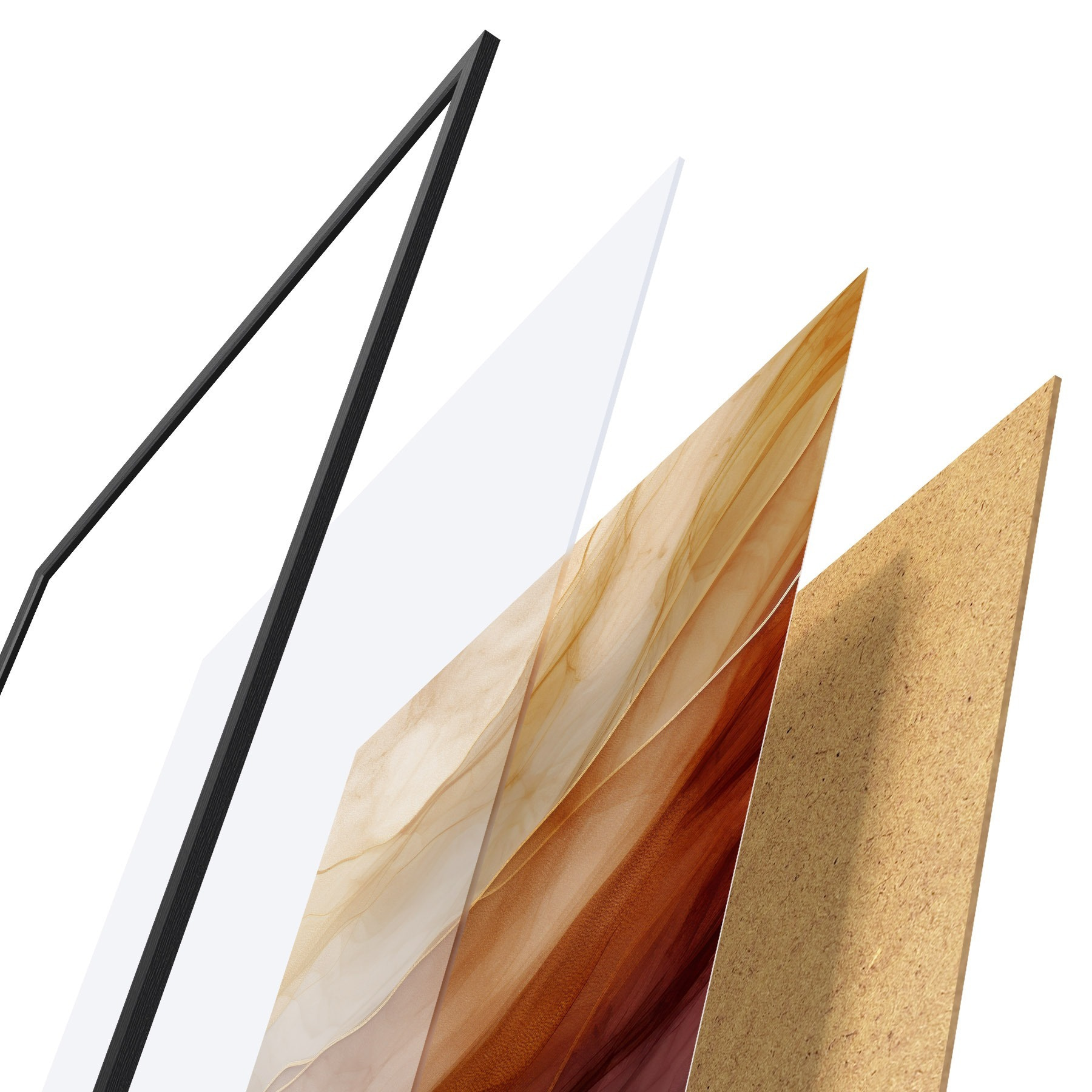 Plakāts sastāv no rāmja, pleksstikla, iespiestā attēla un skaidu plātnes pamatnes. Plakātu var uzreiz piekarināt pie sienas, pateicoties aizmugurē esošajiem stiprinājumiem.