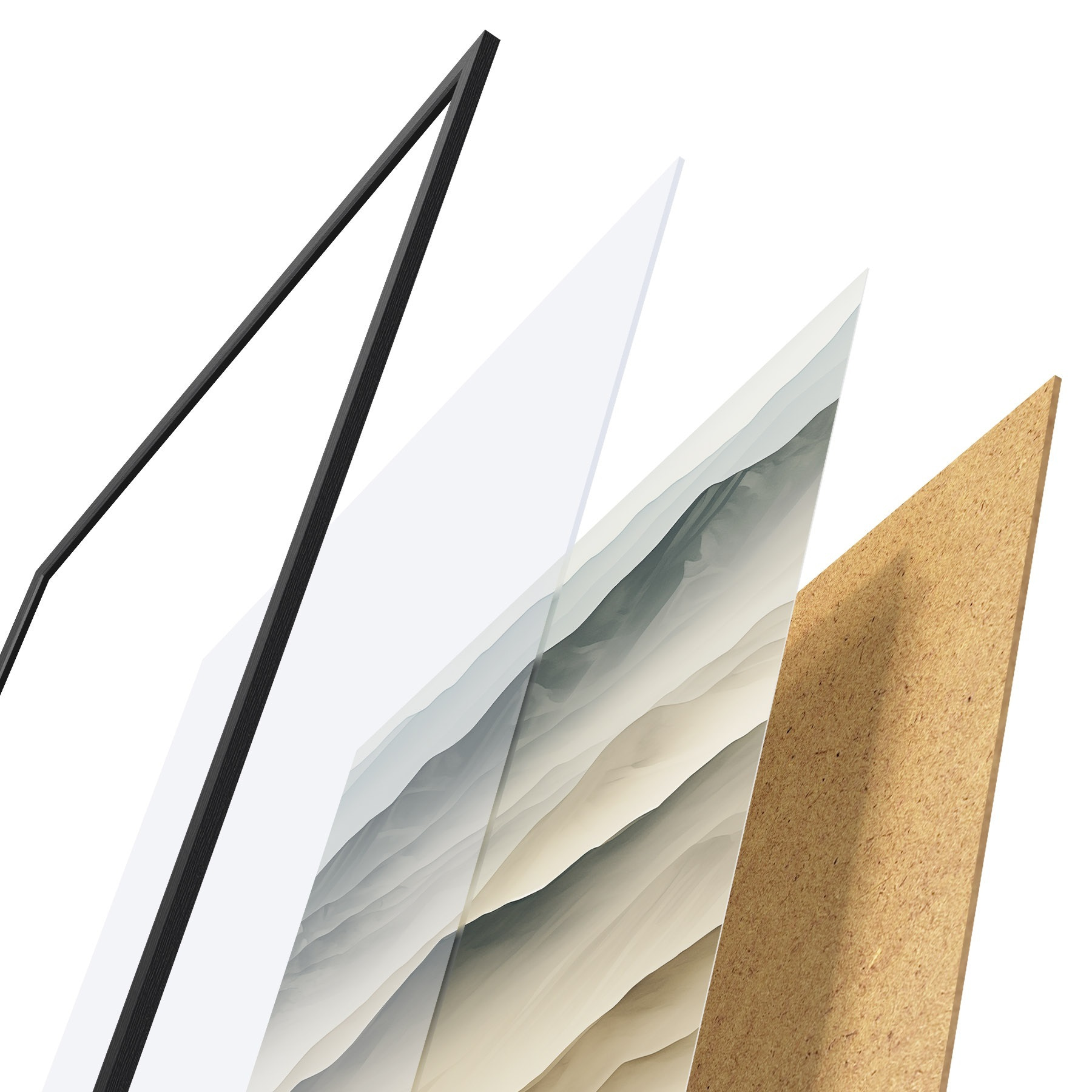 Plakāts sastāv no rāmja, pleksstikla, iespiestā attēla un skaidu plātnes pamatnes. Plakātu var uzreiz piekarināt pie sienas, pateicoties aizmugurē esošajiem stiprinājumiem.