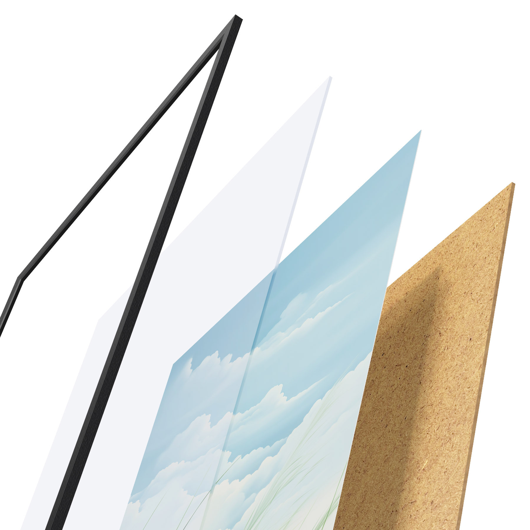 Plakāts sastāv no rāmja, pleksstikla, iespiestā attēla un skaidu plātnes pamatnes. Plakātu var uzreiz piekarināt pie sienas, pateicoties aizmugurē esošajiem stiprinājumiem.
