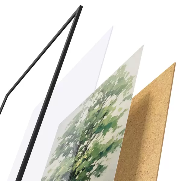 Plakāts sastāv no rāmja, pleksstikla, iespiestā attēla un skaidu plātnes pamatnes. Plakātu var uzreiz piekarināt pie sienas, pateicoties aizmugurē esošajiem stiprinājumiem.