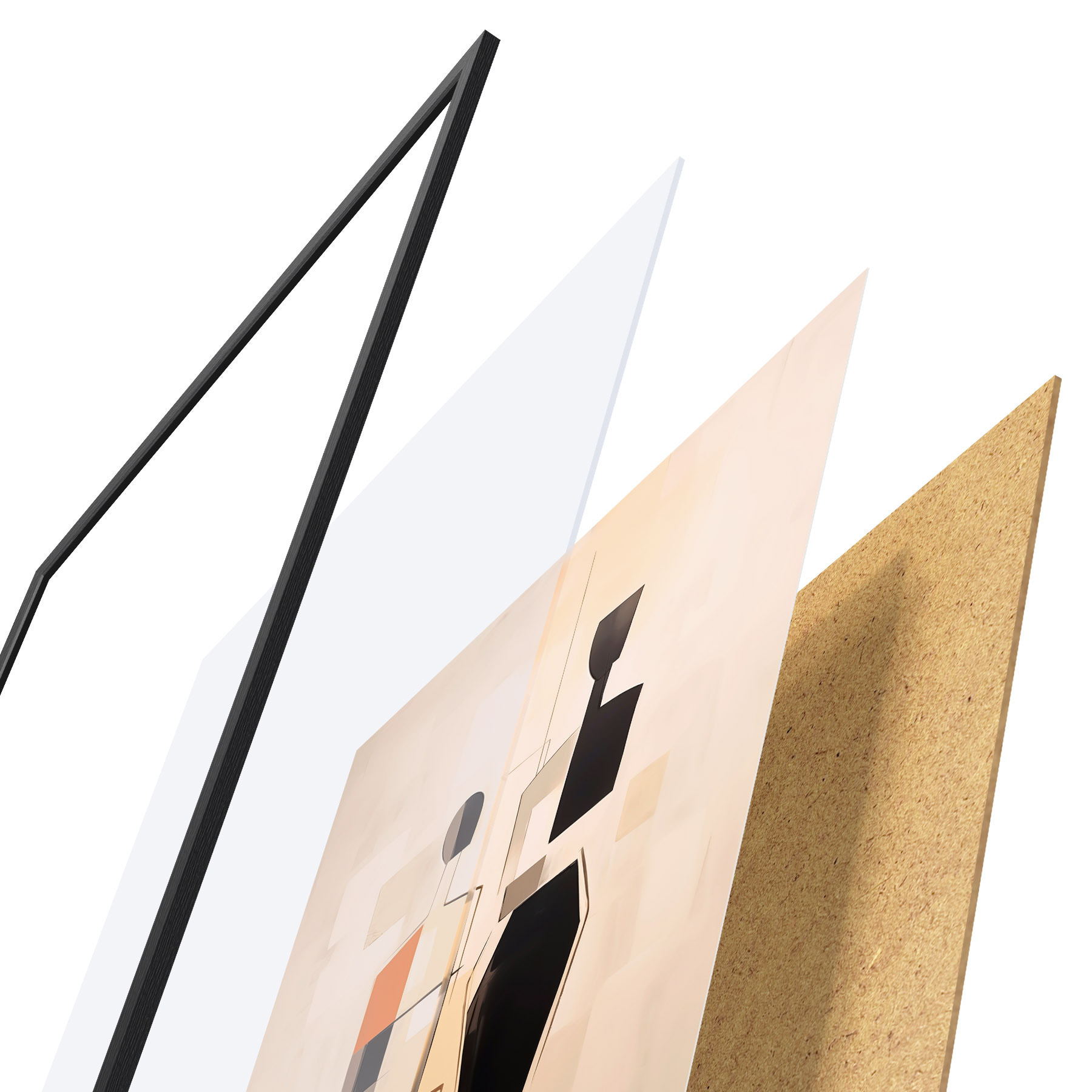 Plakāts sastāv no rāmja, pleksstikla, iespiestā attēla un skaidu plātnes pamatnes. Plakātu var uzreiz piekarināt pie sienas, pateicoties aizmugurē esošajiem stiprinājumiem.