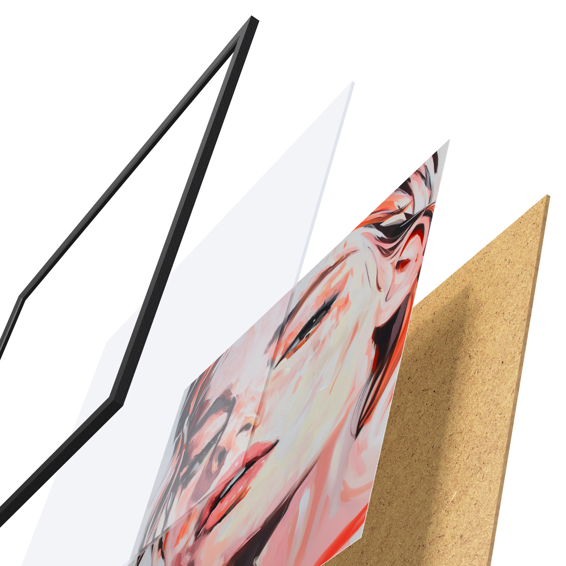 Plakāts sastāv no rāmja, pleksstikla, iespiestā attēla un skaidu plātnes pamatnes. Plakātu var uzreiz piekarināt pie sienas, pateicoties aizmugurē esošajiem stiprinājumiem.