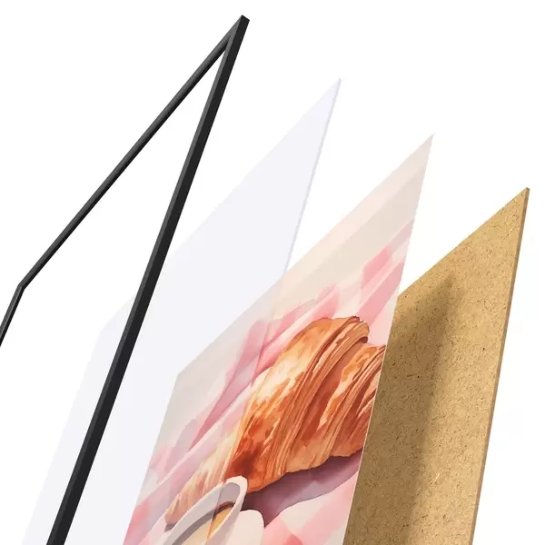 Plakāts sastāv no rāmja, pleksstikla, iespiestā attēla un skaidu plātnes pamatnes. Plakātu var uzreiz piekarināt pie sienas, pateicoties aizmugurē esošajiem stiprinājumiem.