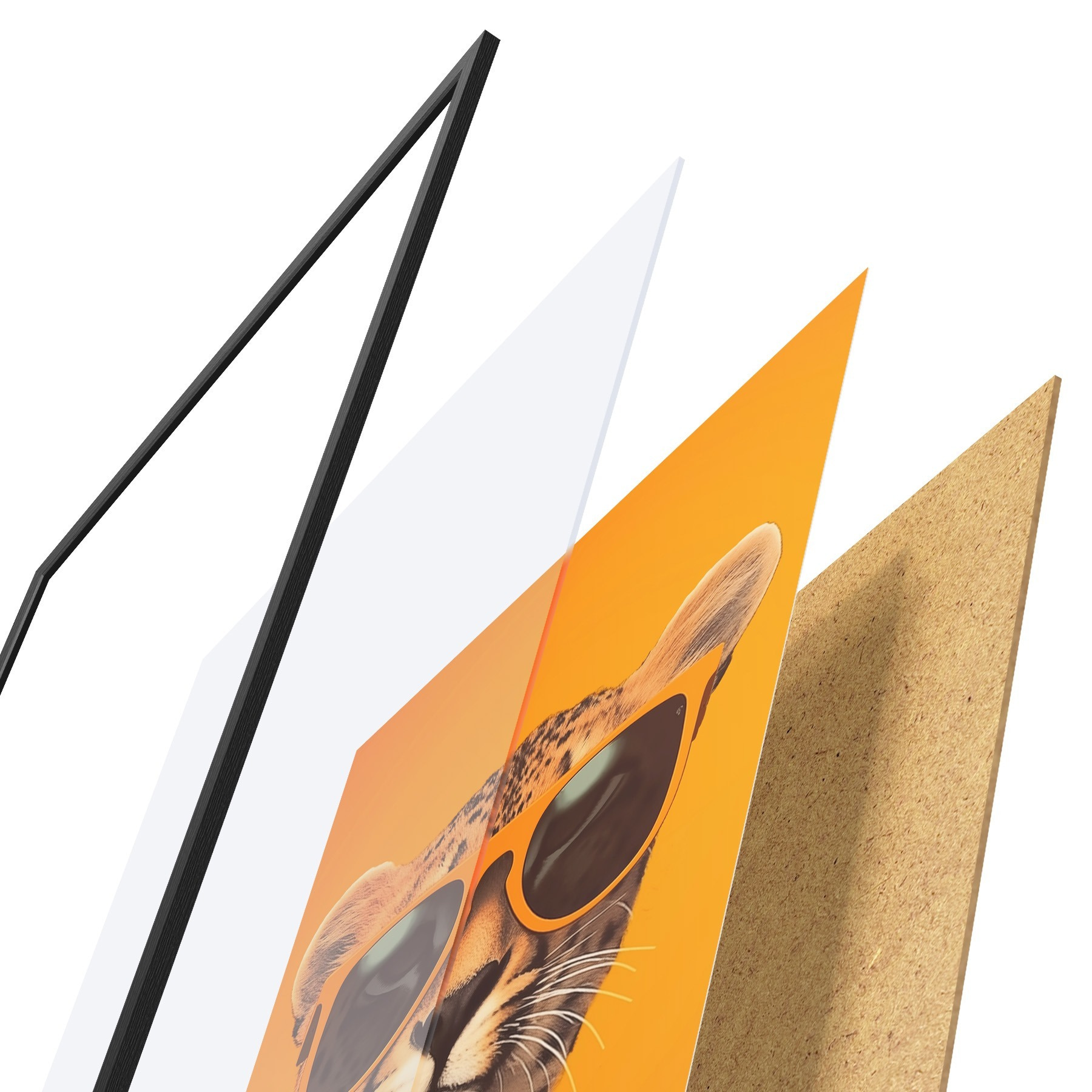 Plakāts sastāv no rāmja, pleksstikla, iespiestā attēla un skaidu plātnes pamatnes. Plakātu var uzreiz piekarināt pie sienas, pateicoties aizmugurē esošajiem stiprinājumiem.