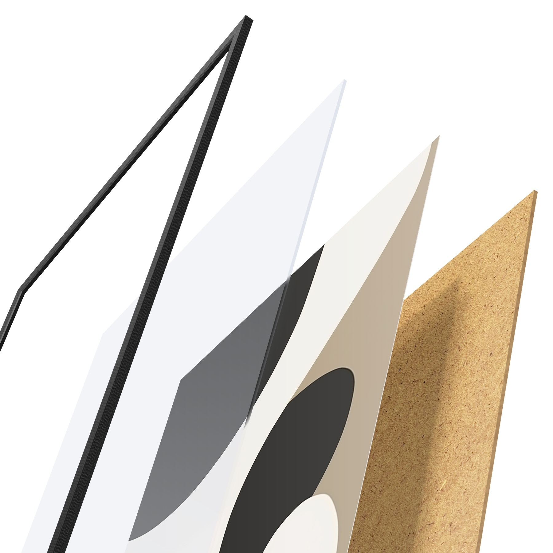 Plakāts sastāv no rāmja, pleksstikla, iespiestā attēla un skaidu plātnes pamatnes. Plakātu var uzreiz piekarināt pie sienas, pateicoties aizmugurē esošajiem stiprinājumiem.