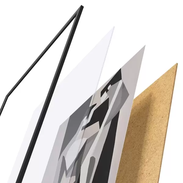 Plakāts sastāv no rāmja, pleksstikla, iespiestā attēla un skaidu plātnes pamatnes. Plakātu var uzreiz piekarināt pie sienas, pateicoties aizmugurē esošajiem stiprinājumiem.
