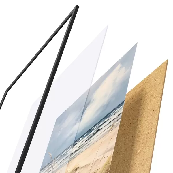 Plakāts sastāv no rāmja, pleksstikla, iespiestā attēla un skaidu plātnes pamatnes. Plakātu var uzreiz piekarināt pie sienas, pateicoties aizmugurē esošajiem stiprinājumiem.